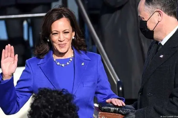 کامالا دِیوی هریس سیاستمدار آمریکایی است که از ۲۰۲۱ بهعنوان چهل و نهمین معاون رئیسجمهور آمریکا تحت ریاستجمهوری جو بایدن فعالیت میکند. او نخستین معاون رئیسجمهورِ زن و نخستین معاون رئیسجمهور سیاهپوست و آسیایی آمریکایی این کشور بهشمار میرود. این تصویر متعلق به دهه ۸۰ میلادی و شرکت کاملا هریس در یک میتینگ انتخاباتی است.
