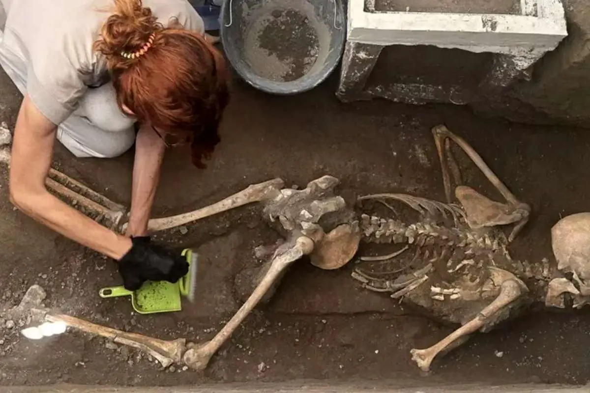 (ویدئو) کشف بقایای اسکلتی و گنجینه ۲ هزار ساله در پمپئی