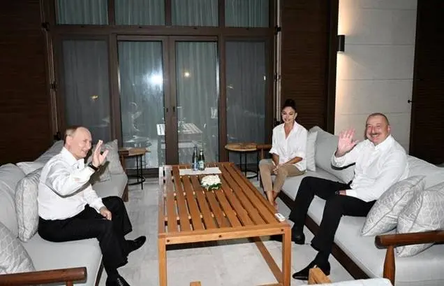یکشنبه شب، الهام علی اف رئیس جمهوری آذربایجان به همراه همسرش «مهربان»، در خانه خود در ساحل دریای خزر از پوتین استقبال غیررسمی کردند و باهم شام خوردند. «مهربان» همسر علی اف، همزمان معاون رئیس جمهوری نیز هست.