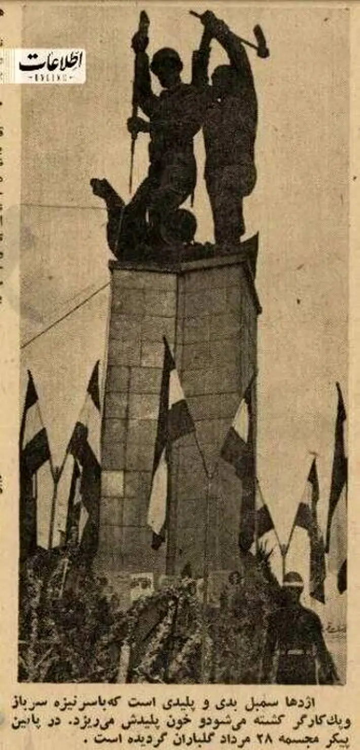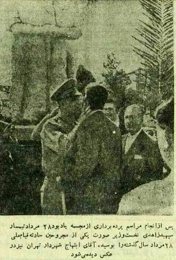 در سال ۱۳۳۳ یک سال بعد از کودتای ۲۸ مرداد این میدان که محل اصلی درگیری بین طرفداران مصدق و شاه بود را میدان ۲۸ مرداد نامگذاری و مجسمهای در میانه آن نصب شد. این مجسمه یک فرد نظامی و غیر نظامی را در کنار هم مجسم کرده بود.