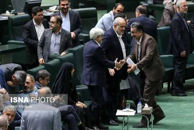 تصاویر خوشوبش نمایندگان با عارف؛ رسائی ایستاده در حال رصد مجلس است
