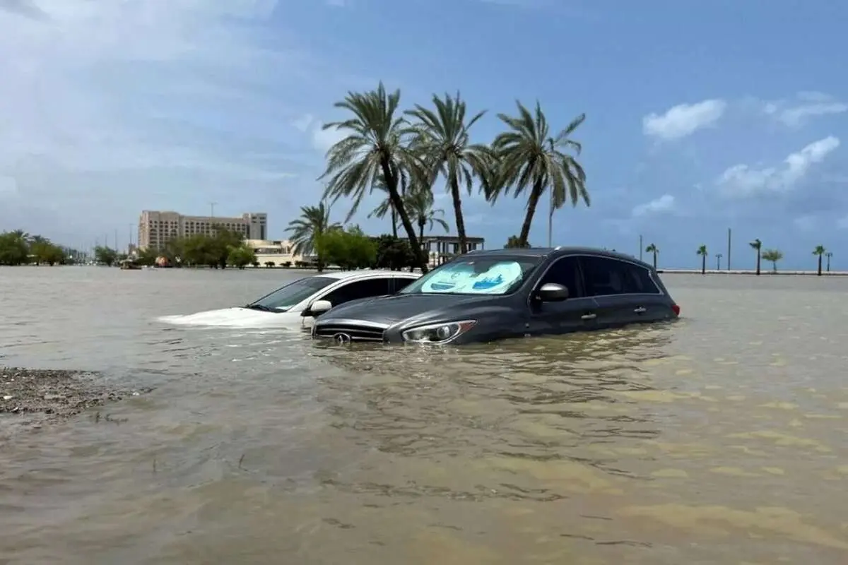 ویدئوهای منتشرشده نشان می دهند که بارندگی شدید منجر به آبگرفتگی خودروها شده است