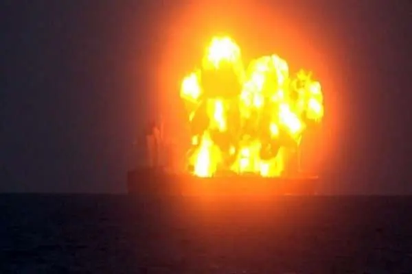 (ویدئو) لحظۀ اصابت موشک یمنیها به کشتی یونانی درحال حرکت