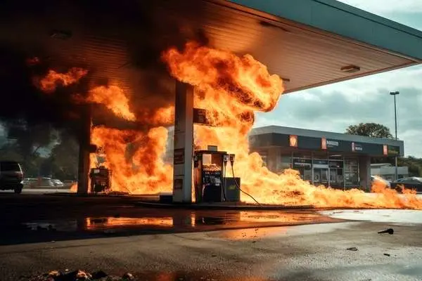 (ویدئو) آتشسوزی در پمپ بنزین جاده دهلران به مهران