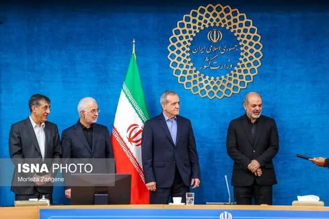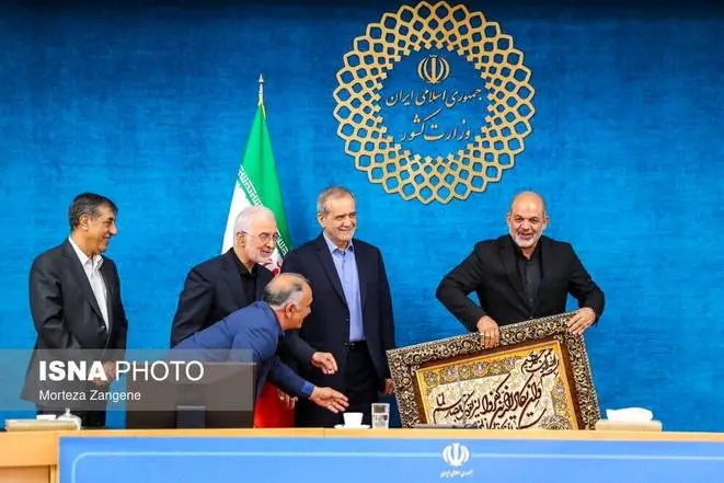 (تصویر) پوشش متفاوت مسعود پزشکیان در مراسم تکریم و معارفه وزیر کشور