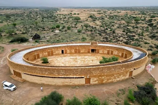یک مدرسه در میان صحرای "تار" هند با طراحی خیره کننده و تلفیق تکنیکهای قدیمی و جدید معماری، خنکی را برای برخی از دختران این منطقه راجستان ایجاد کرده است.