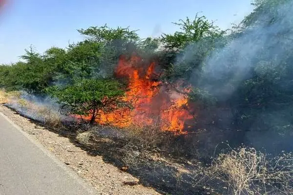 (ویدئو) آتشسوزی درختان حاشیه جاده کرمان-رفسنجان