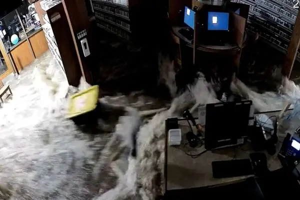 (ویدیو) لحظه هولناک ورود سیل به ساختمان یک کتابخانه