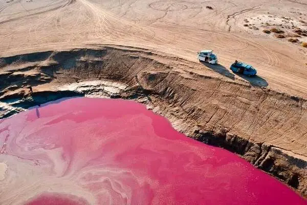 (ویدئو) گلفشان؛ پدیده‌ای عجیب که دریاچه را صورتی کرده‌ است