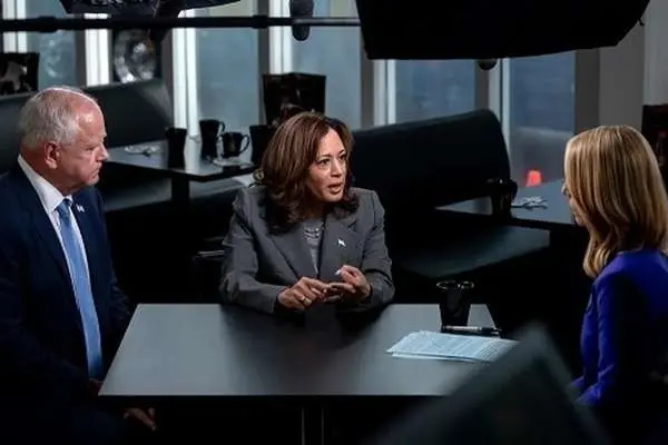 هریس برای اولین بار از تماس تلفنیِ رئیسجمهور جو بایدن پرده برداشت. بایدن به او گفته بود که پس از عملکرد فاجعهبارش در مناظره، قصد دارد از نامزدی در دورۀ دوم کنارهگیری کند. او اشارهای به تغییر سیاست بایدن در قبال فروش تسلیحات به اسرائیل نکرد، به حواشی پدیدآمده ازسوی ترامپ درخصوص هویت نژادی اش نپرداخت و به این پاسخ اکتفا کرد: «همان بازی کهنه و احمقانه! سؤال بعدی لطفاً!»