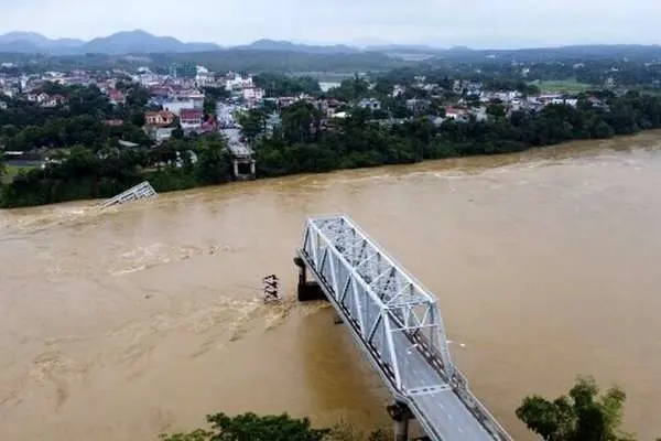 (ویدیو) لحظه فروریختن یک پل در ویتنام پس از طوفان یاگی