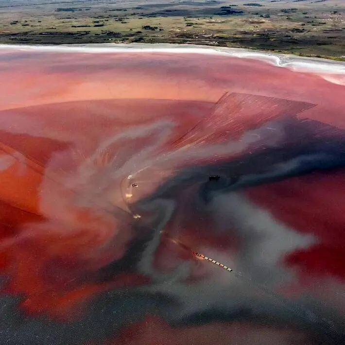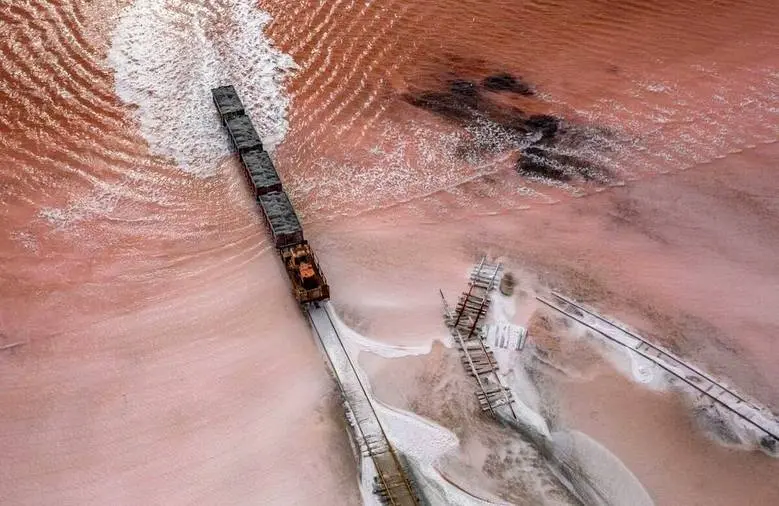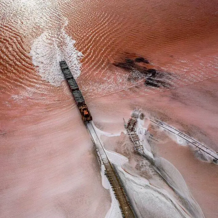 دریاچه برلینسکوی، واقع در منطقه آلتای روسیه نزدیک به مرز قزاقستان، مکان منحصر به فردی است که به دلیل رنگ صورتی آب خود در تابستان مشهور است. میگوهای آرتمیا سالینا ساکن این دریاچه دلیل رنگ صورتی آن هستند. علاقمندان به قطار نیز با مورد جالب توجهی در دریاچه برلینسکوی مواجه میشوند: یک قطار باری در آبهای کم عمق این دریاچه حرکت میکند.