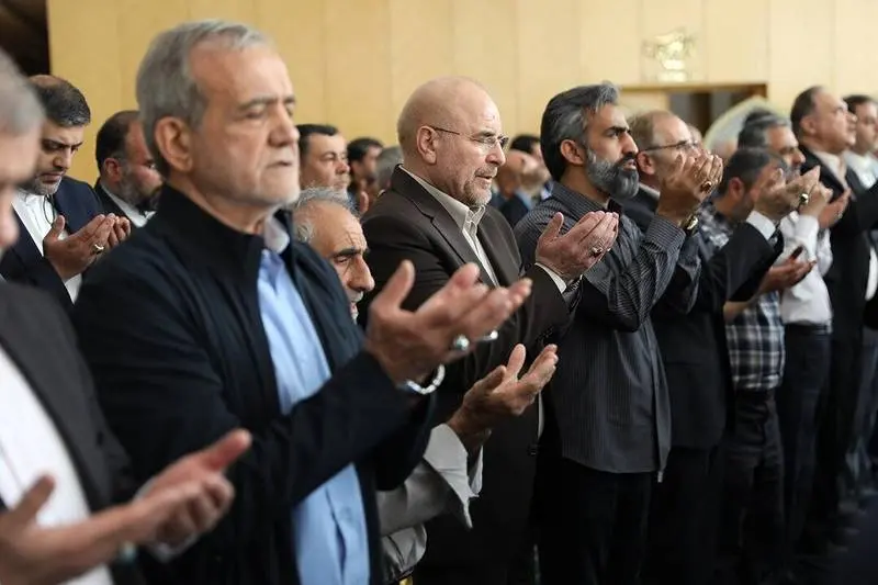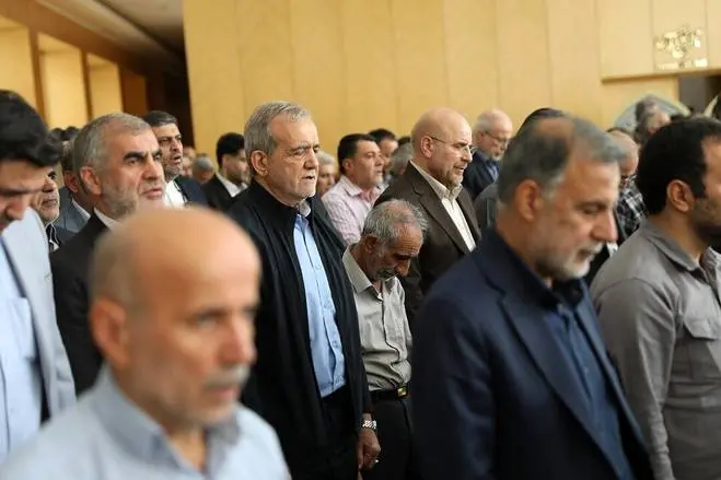 (تصاویر) نماز مسعود پزشکیان و قالیباف