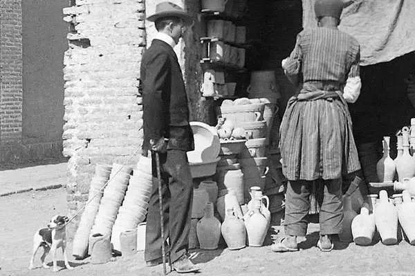 مغازه کوزه‌فروشی در تهران با یک مشتری فرنگی