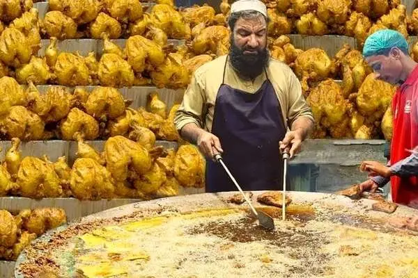 (ویدئو) غذای خیابانی در پاکستان؛ پخت ۲۰۰ کیلو مرغ سوخاری