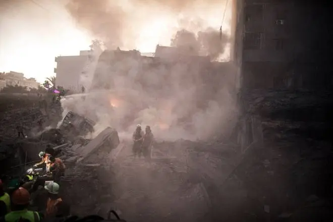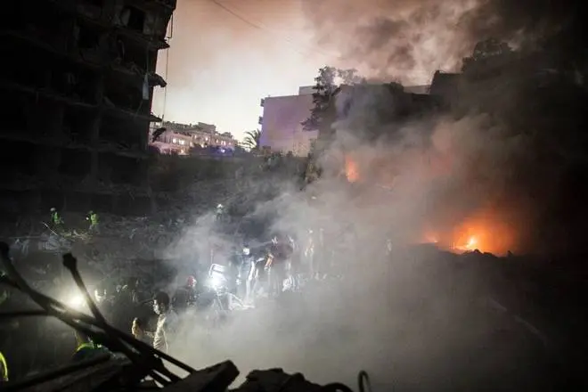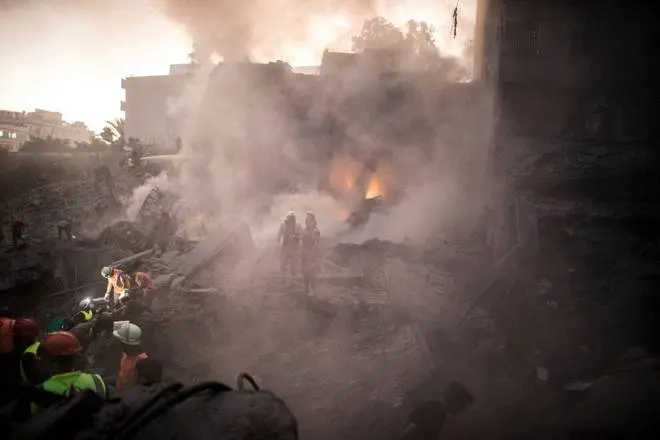 تصاویر جدیدی از آواربرداری در محل حمله رژیم صهیونیستی در ضاحیه بیروت منتشر شد.