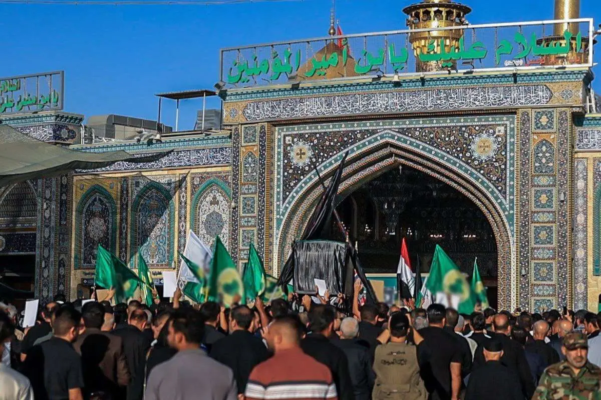 پیکر سیدحسن نصرالله، در حرم مطهر امیرالمؤمنین علیهالسلام در نجف اشرف بهصورت نمادین تشییع شد.