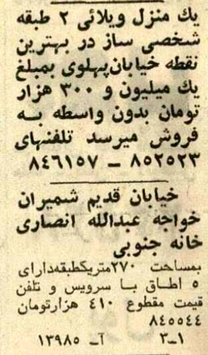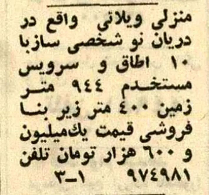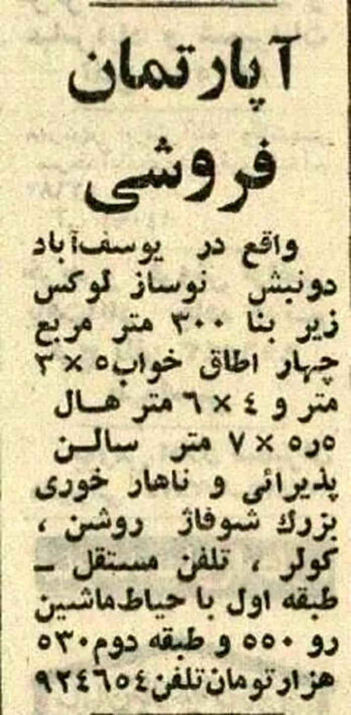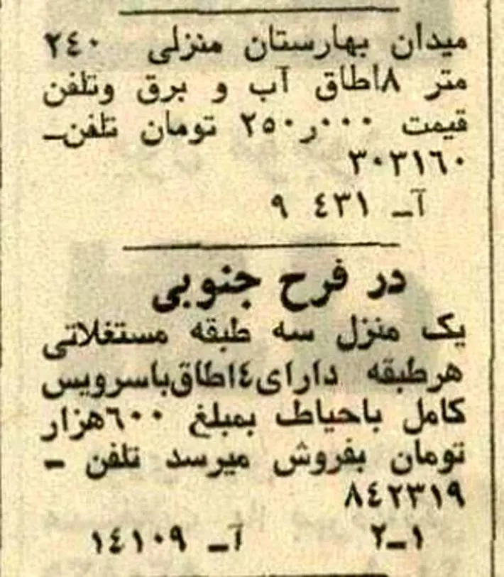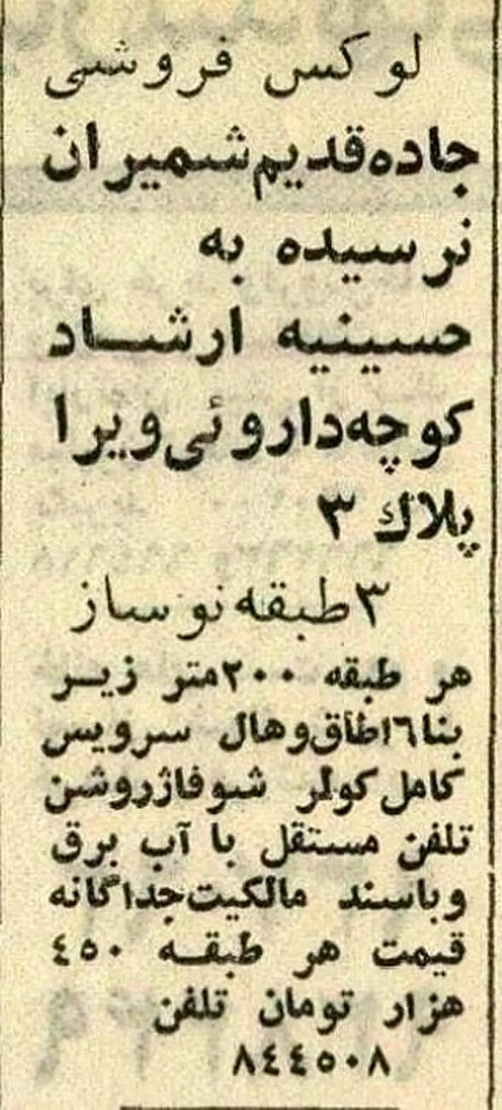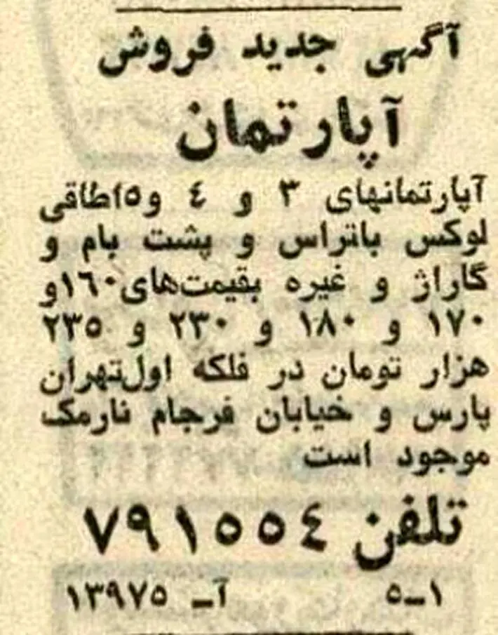 (عکس) قیمت مسکن در یوسف آباد، تهرانپارس و شریعتی سال ۱۳۵۳