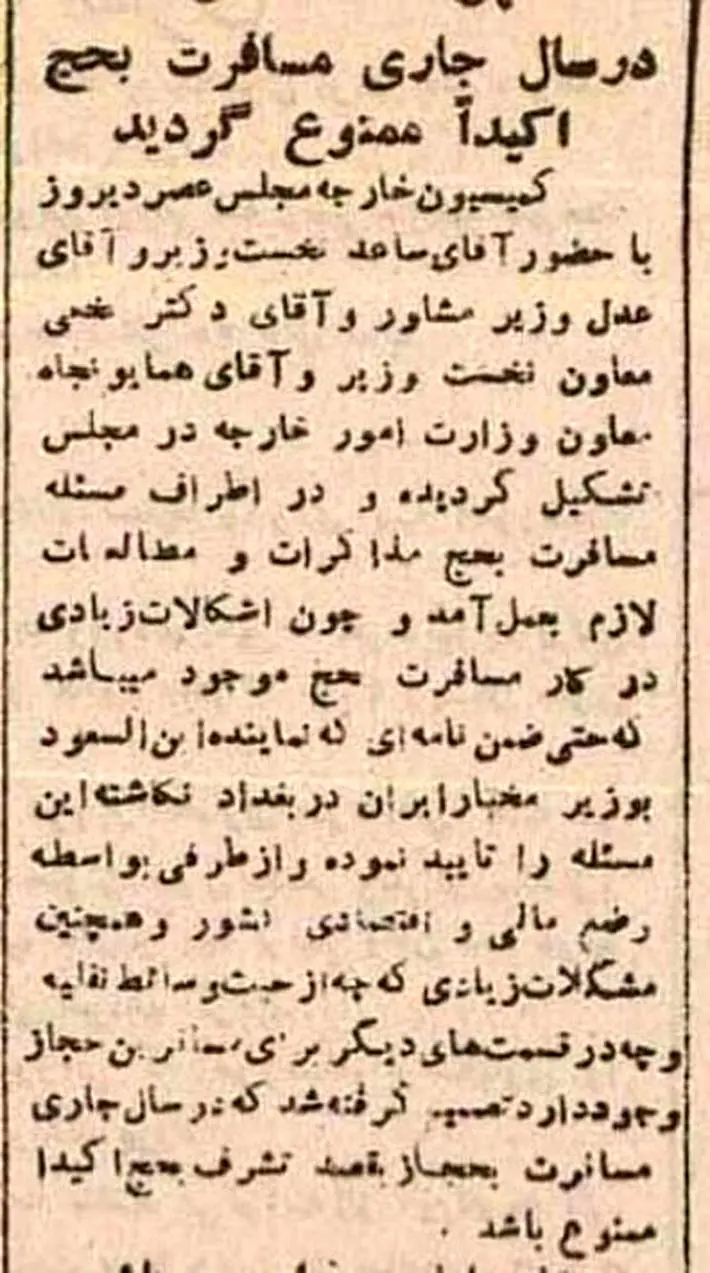 ۸۰ سال پیش دولت ایران اعزام حاجی از ایران به عربستان برای مناسک حج را ممنوع اعلام کرد.