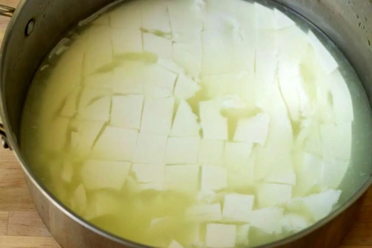 هر چه مقدار شیر بیشتر باشد، مقدار بیشتری آب پنیر خواهید داشت.