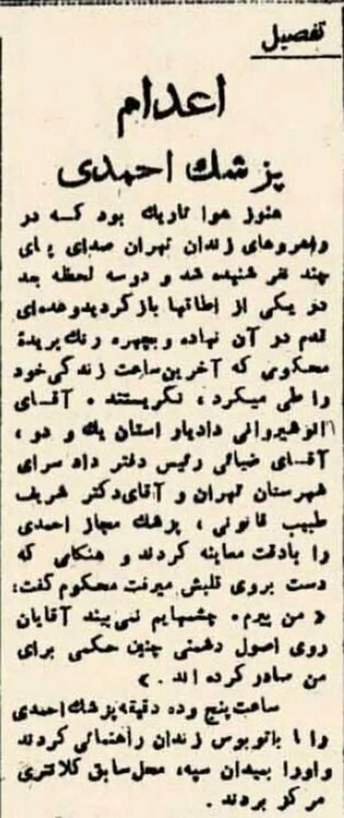 ۸۰ سال پیش احمد احمدی معروف به پزشک احمدی به دار مجازات آویخته شد.