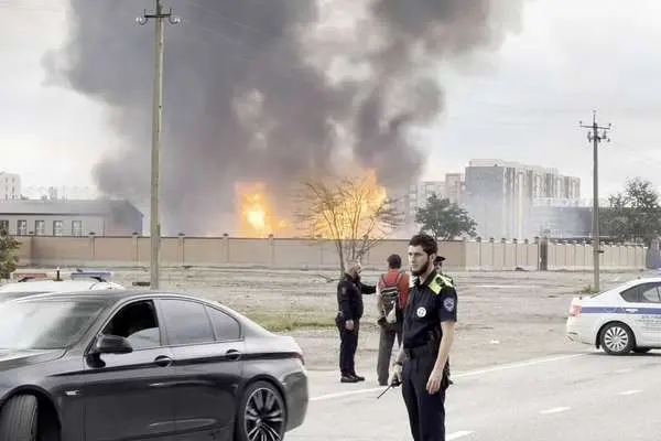 (ویدیو) فرار معجزه آسای آتش نشانان از انفجار بزرگ پمپ بنزین در چچن