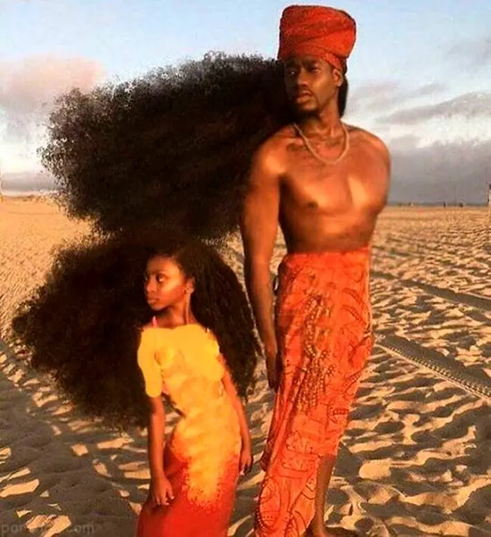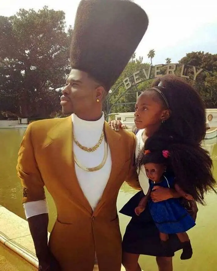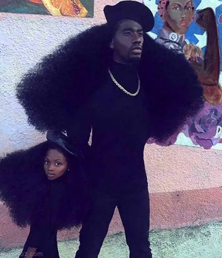 مدل موی عجیب و فرفری دختر و پدر سیاه پوست در شبکه‌های اجتماعی بسیار جنجالی شده است و بار‌ها نیز به اشتراک گذاشته شده است.