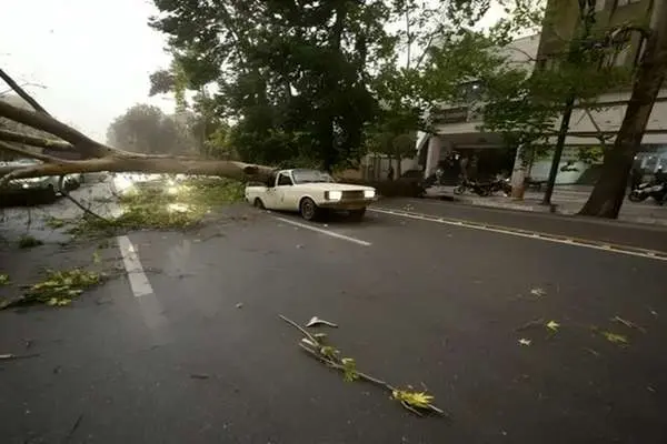 سقوط درخت روی ماشینها در پی تندباد امشب تهران (ویدئو)