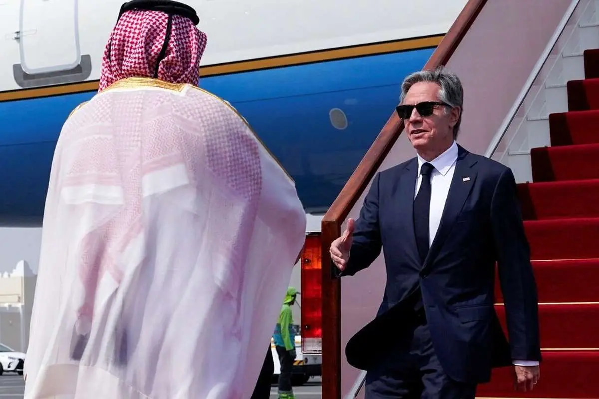 با نزدیک شدن انتخابات، جو بایدن، آنتونی بلینکن، وزیر امور خارجه را به خاورمیانه فرستاد تا بحران را مدیریت کند. این سفر که یازدهمین مأموریت آنتونی بلینکن به منطقه در طول جنگ بود، به صورت اضطراری و بدون برنامهریزی دقیق انجام شد. آنتونی بلینکن توقف از پیش تعیینشده در اردن را لغو کرد و به عربستان سعودی، قطر و به طور غیرمنتظرهای، لندن سفر کرد، جایی که بهطور جداگانه با مقامات لبنان، اردن و امارات متحده عربی دیدار کرد.