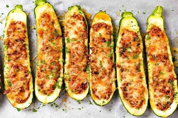 کدو سبز شکم پر پیتزایی با پنیر و گوشت چرخ کرده جزو انواع خوراک با گوشت چرخ کرده برای شام و ناهار است.
