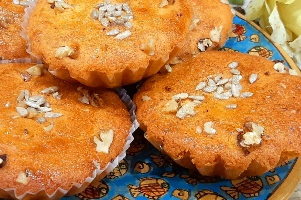 قالبهای مافین را با روغن چرب کنید و مایه شیرینی را تا نیمه قالب بریزید.