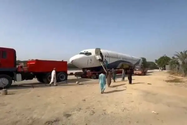 انتقال بدنه اسقاطشده هواپیمای بوئینگ به پاکستان (ویدئو)