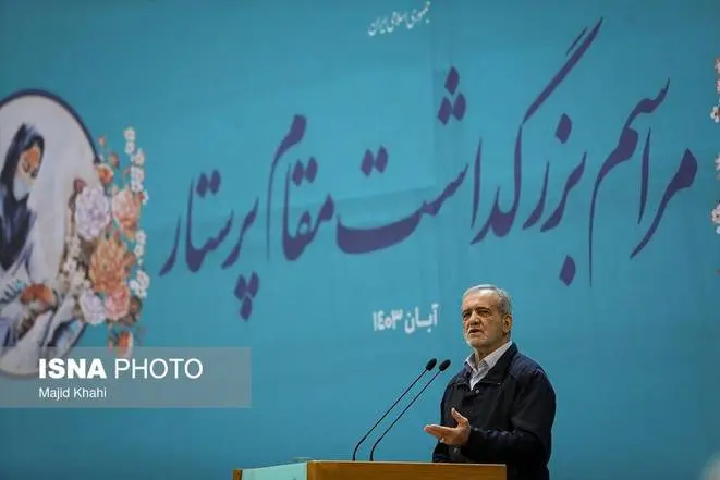 صبح امروز چهارشنبه ۱۶ آبان ۱۴۰۳ آیین بزرگداشت مقام پرستار با حضور مسعود پزشکیان، رئیس جمهور در محل سالن اجلاس سران برگزار شد.