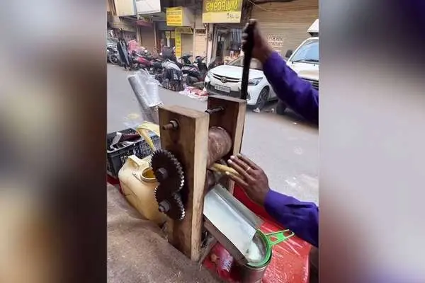 آب نیشکر تازه و طبیعی، به سبک هندی! (ویدئو)