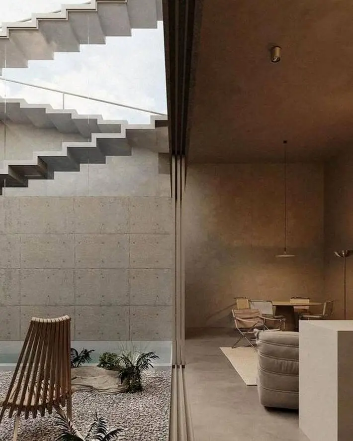 اگر طرفدار سبک معماری بروتالیسم با چاشنی کمینه گرایی هستید، قطعا یکی از بهترین نمونههای آن پیش روی شما قرار دارد. اینجا سردی منظره سیمانی با سادگی طراحی داخلی پیوندی عمیق ایجاد کرده که در نهایت حسی مطلوب در مخاطب ایجاد میکند.