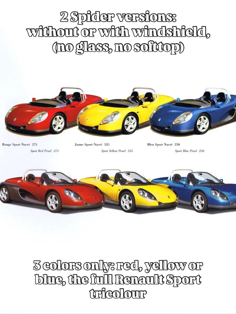با همکاری پاتریک لکوئمن رئیس طراحی رنو، پروژه W94 آغاز شد. نتیجه این پروژه یک «بارکتا» (رودستر بدون سقف) موتور وسط و دیفرانسیل عقب به سبک قدیمی بود. پیشنمونه نزدیک به تولید این خودرو با نام «اسپایدر» در نمایشگاه خودرو ژنو ۱۹۹۵ رونمایی شد.