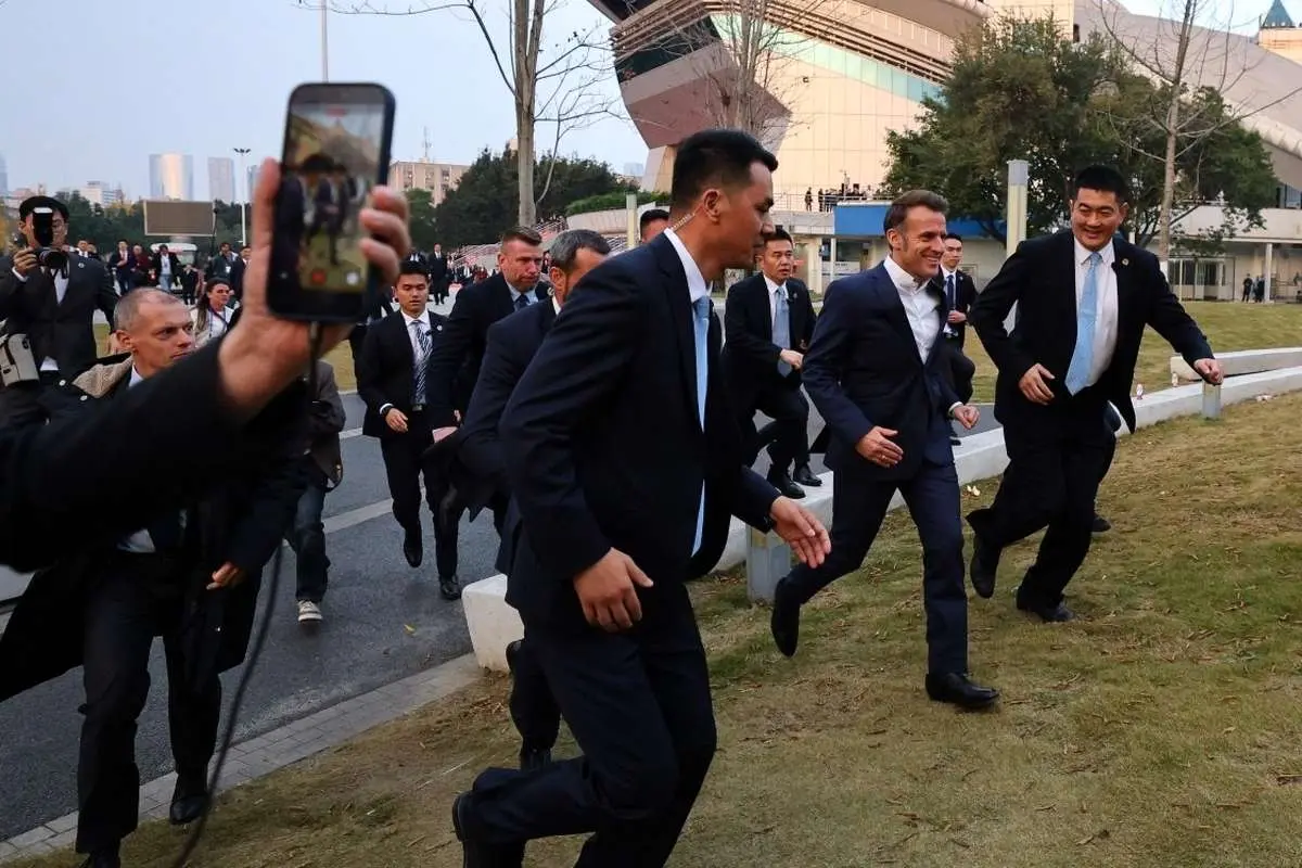 دویدن مکرون به سوی دانشجویان چینی محافظانش را به دردسر انداخت