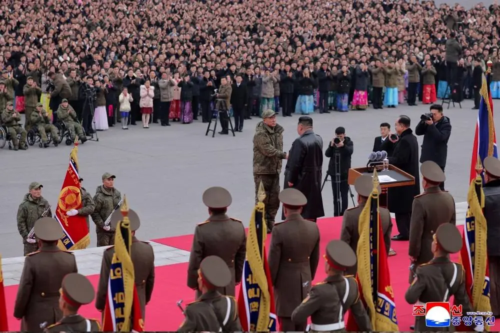 مراسم استقبال از نظامیان ارتش کره شمالی که از جنگ اوکراین بازگشتهاند در پیونگیانگ برگزار شد یم جونگ اون، رهبر کره شمالی در این مراسم حضور داشت و طی سخنانی گفت: خون و عرقی که سربازان ما در منطقه عملیاتی خارجی ریخته و فداکاریهایشان، هرگز بیثمر نخواهد بود و دستاوردهای آنها جاودانه خواهد درخشید.
