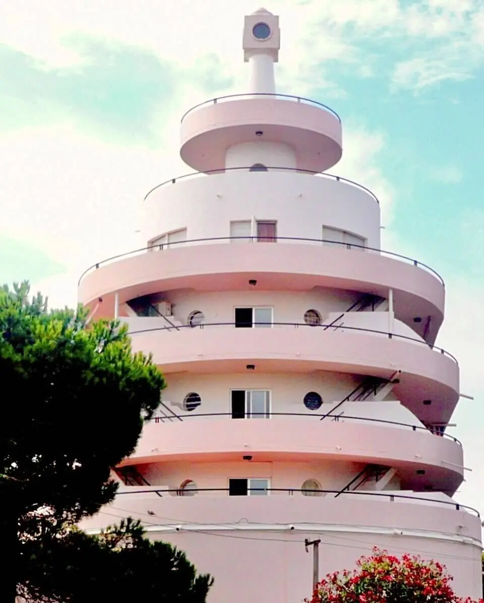 ساختار این بنا به دلیل فرم متمایز دریاییاش شهرت جهانی دارد و اغلب با یک کشتی اقیانوسپیما مقایسه میشود. انحناهای گسترده و بالکنهای گرد، به ساختمان سیلویتی پویا بخشیده است که به نام اساطیری «آتلانتیس» اشاره دارد. این طراحی به گونهای اجرا شده است که هماهنگی کاملی با چشماندازهای ساحلی، سواحل شنی و طبیعت اطراف خود ایجاد کند.