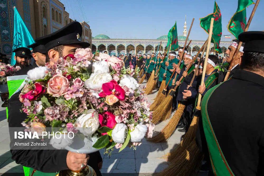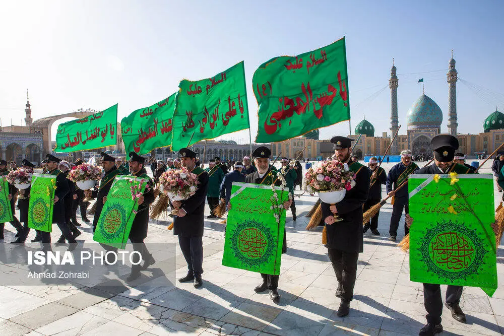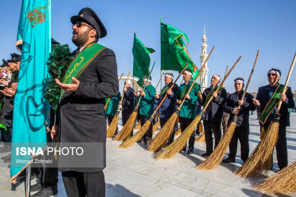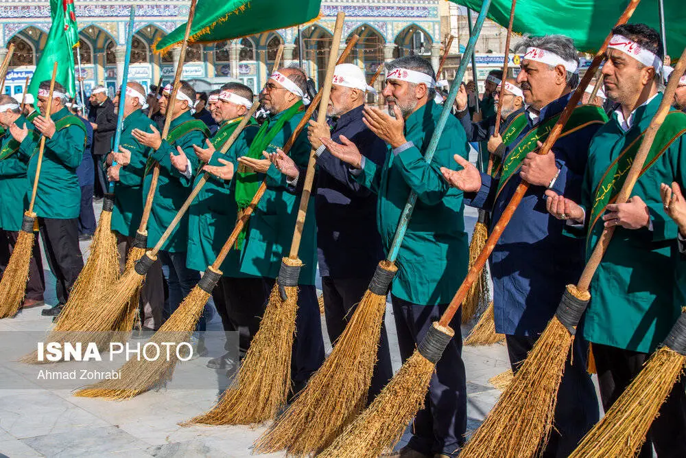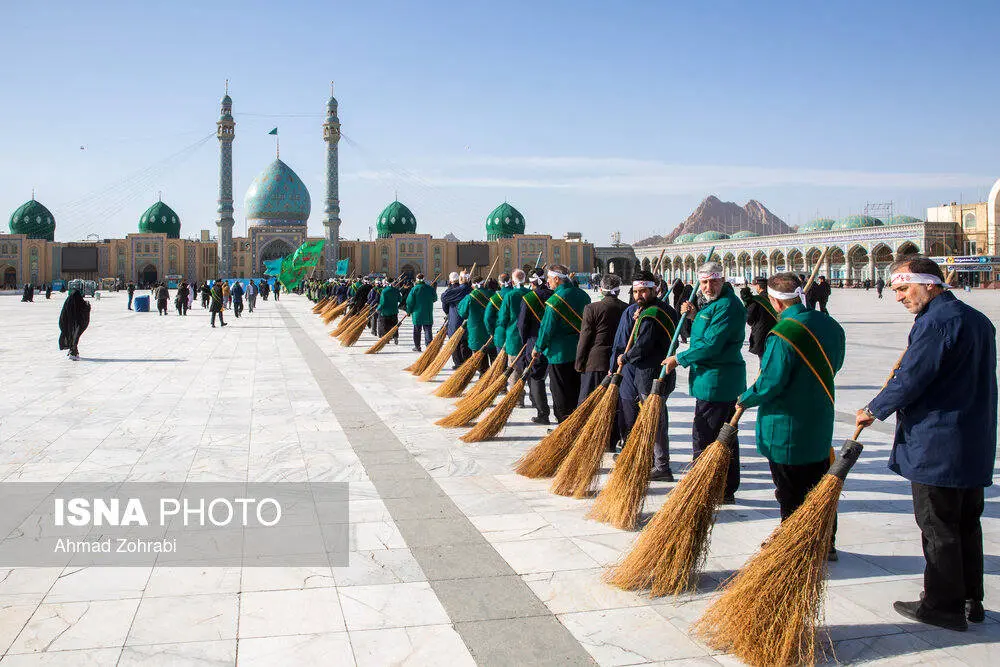 تصاویر؛ آیین جاروکشی خادمان مسجد جمکران
