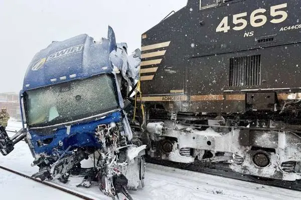همزمان با عبور طوفان زمستانی «جیانا» از ایالت کارولینای شمالی، یک کامیون که در مسیر ریل راهآهن در شهر گاستونیا گیر کرده بود، با قطار برخورد کرد.