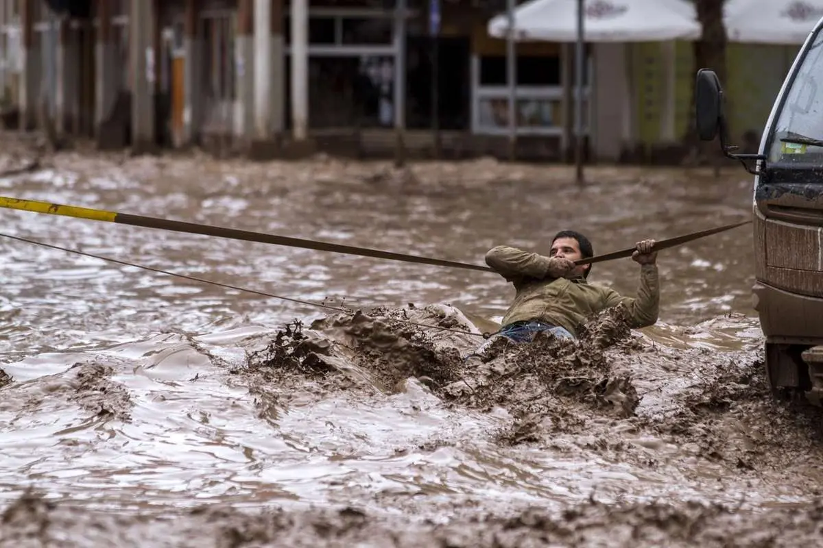 غرق شدن خیابانها و خودروها در پی وقوع سیل در شیلی