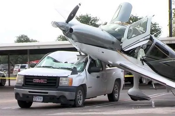 یک هواپیمای کوچک که در بزرگراهی در ایالات متحده فرود اضطراری داشت، با چندین وسیله نقلیه برخورد کرد. در این حادثه دو نفر زخمی شدند.