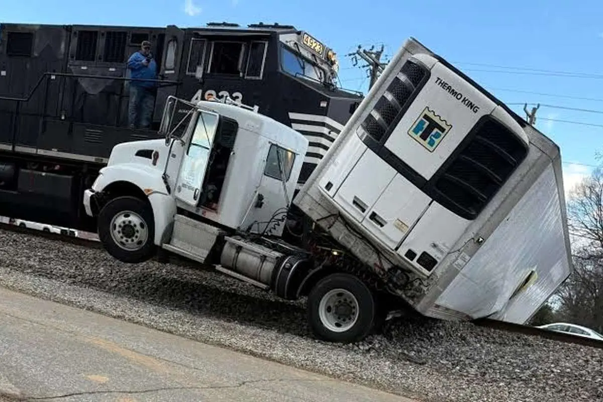 یک قطار در کارولینای جنوبی با یک تریلی که روی ریل راهآهن متوقف شده بود برخورد کرد و آن را با خود کشید.