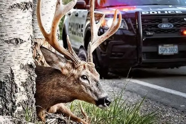 مأموران پلیس در ایالت مینهسوتا به گوزنی که شاخهایش در ننو یکی از شهروندان گیر کرده بود. این عملیات نجات بدون آسیب به حیوان انجام شد.