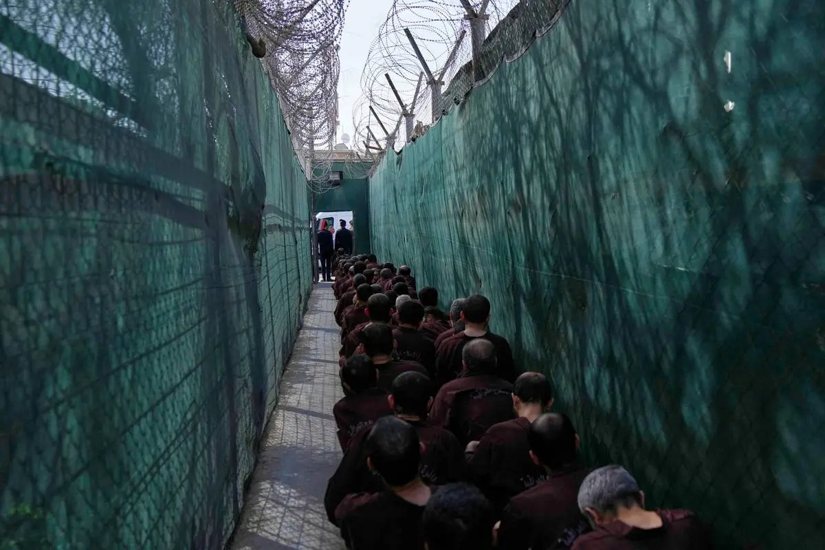 بازجوییها معمولاً بهصورت مرحلهای انجام میشود. زندانیان در گروههای کوچک، با دستبند، لباسهای زرد یا قهوهای و ماسک پزشکی، وارد راهرویی طولانی با اتاقهایی در دو طرف میشوند. سپس هر یک جداگانه به اتاق بازجویی برده شده و اطلاعاتشان ثبت میشود. خبرنگاران از پشت یک پنجره کوچک شاهد روند بازجویی بودند، اما امکان شنیدن پرسشها و پاسخها وجود نداشت و مشخص نبود آیا زندانیان تحت فشار قرار دارند یا خیر. برخی نیز برای معاینه به مرکز درمانی منتقل میشوند.