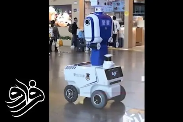 حضور رباتهای پلیس در ایستگاه قطار گوانگژو، ازدحام مسافران را مدیریت میکند.