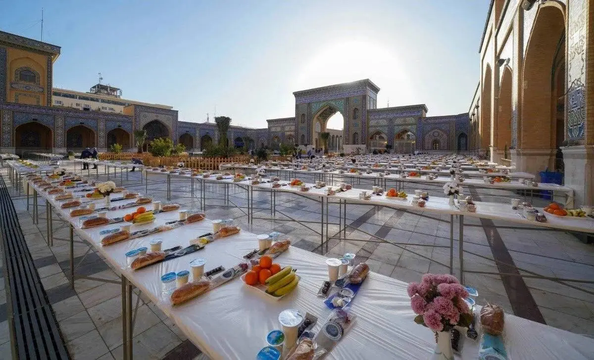 سفره افطار در حرم حضرت علی(ع) برای روزه داران پهن شده است.