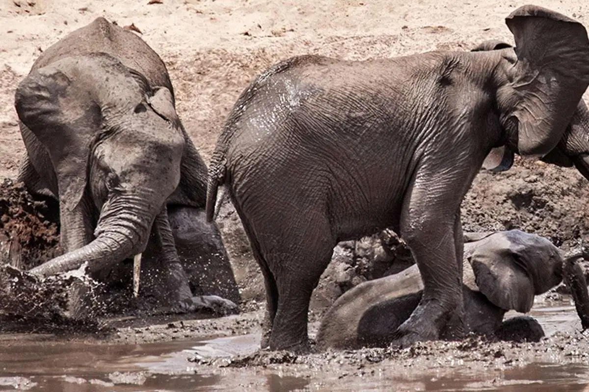 یک فیل مادر زمانی که بچهاش عمیقاً در یک گودال گِلی گرفتار شد، هرگز تسلیم نشد. او با ارادهای راسخ بیوقفه با پاها و خرطومش زمین را میکند و حتی لحظهای استراحت نکرد. پس از تلاشی نفسگیر، سرانجام موفق شد کوچولویش را آزاد کند.