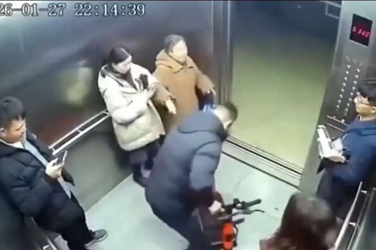 تصاویری از لحظه انفجار باتری اسکوتر برقی در آسانسور منتشر شده است.